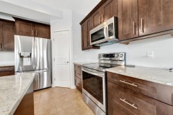 Welcome to College Park living! This beautifully upgraded 1,850 sq. ft. two-storey home sits on a quiet corner lot and offers exceptional comfort, space, and style. The open-concept main floor features rich hardwood and tile flooring, wide baseboards, Quartz countertops, undermount sink and newer LG stainless steel appliances. A 2-piece bath and main floor laundry with built-in cabinetry add everyday convenience. The oversized double attached heated garage (25' x 26') includes hot and cold water taps and a floor sump—perfect for year-round functionality. Upstairs, enjoy a spacious bonus room with a cozy gas fireplace, a 4-piece bath, and three bedrooms, including the generous sized primary suite with luxurious ensuite featuring a jetted jacuzzi tub and separate shower. The fully finished basement provides two additional bedrooms, another full bath, a large family room, and ample storage—ideal for guests, teens, or a home office. Additional upgrades include a hardwood staircase with iron railings, triple-glazed windows, central A/C, and upgraded cabinets/quartz counter tops throughout all spaces. This home blends quality craftsmanship with modern features—book your showing today!