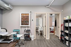 Fantastic opportunity to own half of the 2nd floor of this great commercial unit. This unit has lots of potential for a multitude of uses, at one time it was split into 2 tenants and could easily be split again if you wanted to have a smaller space for your business and rent out the other side. This unit is currently being used a spa and salon, please note the fixtures belong to the tenant and will be removed. This is a great location with lots of natural light, your own heating and cooling controls. There is a reception with a kitchen area and a washroom with tiled flooring (there is potential for a 2nd washroom but it is currently being used as the laundry). There is a huge room with large windows (this is currently used for the hairdressing stations), there are 3 private rooms and another area that would make a great shared space. The unit has modern paint colours and gorgeous flooring. There is additional storage space and an entrance to the back staircase. The building is well maintained and there is lots of parking for your customers. This is a great unit in a fabulous location! View 3D Tour.