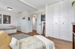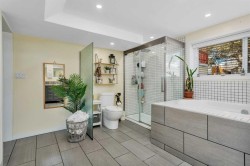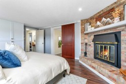 Tucked onto a beautifully mature lot, 11 Pearson Crescent offers the kind of privacy and curb appeal that’s hard to find. This updated bi-level feels warm, functional, and move-in ready, with thoughtful upgrades throughout and flexible space to fit real life.The main level is bright and inviting, finished in warm whites and rich vinyl plank, with fresh paint and trim. The kitchen is both stylish and practical, featuring new quartz countertops, a gas stove, stainless steel appliances, and plenty of room to gather—complete with a large dining area and two pantries. Garden doors lead directly out to the deck, while a big, bright south-facing window fills the living room with natural light.Down the hall are two bedrooms and two bathrooms. The larger bedroom offers a cozy, flexible space with an electric fireplace—perfect for relaxing or multi-use living. Across the hall is an updated 3-piece bath with a beautifully tiled walk-in shower. The second bedroom overlooks the backyard and includes the convenience of a 2-piece ensuite.The lower level offers even more space with three additional bedrooms, including the primary suite. This private retreat features a new built-in wardrobe and a stunning ensuite with dual sinks, a deep soaker tub, and a tiled walk-in shower. One of the additional bedrooms is currently set up as a family room, adding even more versatility. You’ll also find the laundry room here, complete with a sink and direct access to the garage.Just off the kitchen is an incredible 19’ x 23’ rooftop deck—private, sun-filled, and built for entertaining. It overlooks the fully fenced backyard, complete with a lush lawn, raised garden boxes, and a shed.The garage is tucked neatly beneath the deck, offering both parking and workspace with a built-in bench and electric heat—ideal for projects year-round. The driveway measures 34' long which gives the option for RV parking as well. Additional updates include a hot water tank (2024), asphalt shingles (2023), and recent kitchen improvements including flooring and countertops (2025), along with newer appliances.With up to five bedrooms depending on how you use the space, there’s room here to grow, work from home, or host guests. Located with easy access to Red Deer’s trail system, this home offers a great balance of comfort, function, and everyday living.