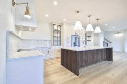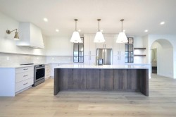 This stunning custom-built home by Avera Homes sits in the heart of Evergreen, one of Red Deer's most desirable and thoughtfully designed communities. Evergreen is where nature is at your door, and multi-use trails connect seamlessly to the city’s renowned trail system making outdoor recreation an everyday experience. Featuring four spacious bedrooms, a large bonus room, and an upper floor laundry room with built-in sink, this home is designed for modern family living with elevated comfort and style. From the moment you arrive, you’ll notice the attention to detail—from the covered front entry with composite decking to the striking designed exterior with unique custom arches that enhance the architectural beauty of this home. Step inside to discover a spacious, light filled layout featuring vaulted ceilings, 9' walls and of course the heart of the home is a chef’s dream kitchen, showcasing premium level quartz countertops, a massive 5' x 10' hickory island with a farmhouse sink, and bespoke cabinetry throughout. Riobel brushed brass plumbing fixtures, ultra-clear curb-less glass shower enclosure, and a freestanding one-piece tub bringing spa level luxury to the bathroom. Every element of this home has been carefully upgraded. ~ Custom light fixtures and lighting plan ~ Solid white maple railings ~ Venetian plaster custom designed fireplace and range hood ~ Upgraded appliances and flooring ~ Custom tile and door hardware ~ Spray foamed garage ceiling and wall cavities for enhanced comfort in the primary suite. The outdoor living space is just as refined with a covered rear deck finished in composite decking perfect for year round enjoyment. The undeveloped basement is roughed in for in floor heat and ready for your personal touch, ideal for expanding your living space as needed. This home is more than just a place to live,, it’s a statement of craftsmanship, comfort, custom design and precision design throughout the interior and exterior. Every detail has been carefully curated to offer a truly one of a kind living experience, blending modern elegance with timeless architectural features. From premium finishes to thoughtful upgrades throughout, this property is a must see for discerning buyers who value quality and character in every square foot.