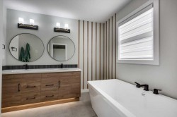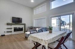 Fully finished, 4 Bed, 3 Bath Modified Bi-Level with Double Attached Garage built by Edge Homes! You'll feel right at home, as you enter the front entry with handy hooks for everyday wear and a closet to hide the rest away. Spacious main level features 13 foot ceiling, vinyl plank flooring, lots of windows, and high end blinds. The kitchen is gorgeous, featuring maple & green toned cabinets, quartz countertops, centre island with extra storage, corner pantry, and stainless appliances. Living room has decorative electric fireplace, with built in mantle, and the dining room leads to garden doors providing access to west facing yard. There are stairs off the back deck leading to the fully fenced yard, and enclosed storage underneath the deck. Rounding out the main floor, there are also 2 good sized bedrooms and a 4 piece bathroom. Upstairs is a loft area perfect for a reading nook, office space or whatever you need. The primary bedroom has feature ceiling, large walk in closet, 5 pce ensuite with soaker tub, double sinks, & tiled shower. Garden door leads to private east facing rooftop patio overlooking pond and hills, what a great spot to enjoy your morning coffee! The fully finished basement offers a huge family room, 4th bedroom, 4 pce bathroom, & large storage/laundry room. The double attached garage is insulated and has an overhead heater. Additional features include a high efficiency furnace with 2 stage fan, HRV, instant heat recovery system, infloor heat, water softener, and an upgraded lighting package throughout. This property, located in Evergreen offers close proximity to walking trails, playgrounds, schools & Clearview Marketplace. It's all finished, with several years remaining on the 10 year home warranty, so you can just move in and relax!