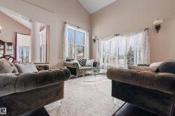 This EXECUTIVE RIVERFRONT 2-storey with all the extras you could imagine, is situated just on the outskirts of Barrhead. Enjoy 5851 sqft of total living space incl 4 bdrms & 4 baths. Quality Veldhuisen Construction home with concrete tile roof, extreme energy efficiency, tons of exposed aggregate concrete with indoor -outdoor entertainment areas. It boasts 19-foot ceilings in two main areas, along with multiple vaulted and coffered ceilings. Experience fantastic riverfront views with the charm of country living, plus town water-sewer. Features include robotic mowers and a private basement suite with a separate entrance. The grand front entry showcases a granite floor and pillars. Amazing views with lots of windows from both floors. Full walkout basement, and great river fishing! Many upgrades in 2019. Price includes most furniture and contents, making this a move-in-ready home for those seeking luxury, comfort, and privacy. It's spotless and waiting just for you! For DOLLHOUSE VIEW click on BROCHURE.