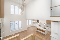 Experience upscale living in this brand new two storey home in Nisku offering 2,600 sq. ft. of luxurious, well designed living space. The main floor features 9 ft ceilings, an open to below layout, and oversized windows that fill the home with natural light. The white kitchen impresses with marble countertops, a large island, and a walk through spice kitchen and pantry, opening to a bright dining area and cozy living room with a marble surrounded fireplace. A main floor bedroom and full bath add flexibility. Upstairs offers four spacious bedrooms, including a primary suite with a walk in closet and spa inspired 5 piece ensuite, plus an additional ensuite bedroom, two more full bathrooms, and convenient upstairs laundry. The unfinished basement with side entrance provides future potential, while the covered deck is perfect for relaxing. Located minutes from the airport and nearby playgrounds, this brand new home is ideal for families looking to create lasting memories.
