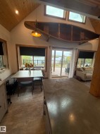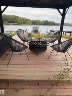 A lifestyle trend connects nature with lakefront views & offers a pleasant year round lake home. Jackfish Lake shares recreation, , paddleboarders, water sports, loon calls and some pretty amazing sunsets at night. This custom built one owner home offers 3 levels of coziness and outdoor living spaces in this unique 1690 sq ft plan. Vaulted pine ceilings in Kitchen & LR. Center Island provides sizable drawers for storage solutions, great window views, solid wood countertop, & natural wood trims. Two bedrooms sleep on the upper level with an open sitting area concept at the top of the staircase. Master bdrm presents sliding barn doors to the 4pce ensuite. Main floor laundry w/2 pce bath. Bsmt provides a casual sitting environment with deck access, pine feature walls & ceilings. Vinyl Planking flooring. The Hot Tub...with the perfect lakeview is 8x16' situated where the deck offers gatherings. Decks are 12x34 & 24x35. Concrete firepit sitting area with built-in storage boxes. In floor heating in basement