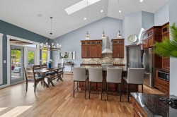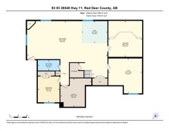 A fully developed bungalow on 1.47 acres in Balmoral Heights! The curb appeal is accented by the paved circular driveway, stucco, stone accents and covered front porch. The front entryway greets you to the open style floor plan that features vaulted ceilings and hardwood floors that have been refinished with a trendy matte finish. Maple kitchen cabinets are accented by full tile backsplash, crown moldings, granite countertops, glass front upper cabinets, a large island eating bar, skylights, a gas stove and a walkthrough pantry. The eating area has patio doors out to the backyard. You'll enjoy relaxing in the living room next to the gas fireplace that has floor to ceiling stone surround. The tiled back entryway has a laundry area with a sink and quartz countertops. There are 3 bedrooms on the main floor. The king sized primary bedroom has hardwood floors, double windows overlooking the backyard, a walk in closet with custom built ins and a 5 piece ensuite with heated tile floors, double sinks, quartz, a freestanding air jet tub & a custom glass/tile shower. The main floor also boasts a powder room off the back entryway and a 4 piece bathroom with quartz. Follow the stairs with wrought iron railings and stair lights down to the basement into the large family games area with a massive wet bar that features granite countertops, a dishwasher, wine fridge and ice maker, pool table (included) and family room with a gas fireplace and a door that accesses the side yard & a two tiered theatre room, all with leather flooring. There is a 4th bedroom, a 4 piece bathroom, a gym/office with durable gym flooring. Step outside onto the composite deck that has a vaulted roof cover (two gas hookups) that leads to a concrete patio with a hot tub area overlooking the retaining wall and into the yard. There is a shed, chicken coop and power/water to the back of the lot for a future shop. The home has a high efficient furnace, a boiler system, central vac, sonos for sound throughout, a/c, reverse osmosis, heated tile throughout (except in the back entryway, a tandem triple car garage (warmed by underfloor heat). The perfect country residential location within minutes to Red Deer. Upgrades since 2016: paved front driveway, stucco repainted, landscaping, retaining wall in backyard, garden shed, reverse osmosis, refinished hardwood with a matte finish and concrete around the home.