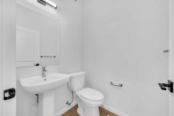 **PRICE IMPROVEMENT** Be the first to live in this stunning brand-new home in Harmony-picturesque Lake community! With luxurious upgrades and plenty of space, this home features beautiful luxury vinyl flooring throughout the main floor, an open floor plan that floods with natural light, a dedicated office perfect for remote work, and a spacious living room. The gourmet kitchen is a chef's dream, boasting quartz countertops, a chimney hood fan, built-in microwave, upgraded gas range, French door fridge, and a center island ideal for food preparation and casual dining. The upper level offers a spacious master bedroom with vaulted ceilings, includes a walk-in closet and a luxurious 3-piece en-suite. Two additional good-sized bedrooms, a laundry room, and a full bathroom complete the upper level, along with a center bonus room perfect for kids' playtime, home office, or evening gatherings. The basement is a blank canvas, offering a side entrance, 9 ft ceilings, extra windows for natural light, and bathroom rough-ins, waiting for your personal touch and design ideas. Enjoy the outdoors on your private 10 x 10 deck, bbq gas line, perfect for relaxation and entertainment. Located in a prime spot, close to highway 1, shopping centers, schools, and a quick drive to Cochrane & Calgary. Don't miss out on this incredible opportunity to own a piece of Harmony! Contact your realtor today to schedule a showing and make this stunning home yours!