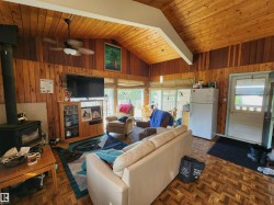 Charming 3 bedroom LAKEFRONT CABIN on Lower Mann Lake with vaulted ceilings and numerous updates, including a NEW HOT WATER TANK, PRESSURE TANK, METAL ROOF, WINDOWS, AND UPDATED BATHROOM. This property is fully furnished and offers a fenced yard, fire pit area, and large covered deck, making it ideal for outdoor enjoyment. Utilities include a private well (rare in the area), a 1,000-gallon septic holding tank, plus both a wood stove and propane forced-air furnace for heating. The adjacent vacant waterfront lot E4454317(listed for $25,000) is also available, with the sellers preferring to sell both together. Located about 2 hours from Edmonton and near the Iron Horse Trail, this cabin makes the perfect lakefront getaway.