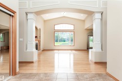 YOU DESERVE THE LION'S SHARE!! Come live like Royalty in this European inspired custom built Estate Home! Located in Four Ridges, only 5 minutes from Sherwood Park. This impressive WALKOUT BUNGALOW offers 4660 square feet of total living space! Massive entrance & soaring ceilings! Open & spacious living room with gas fireplace, hardwood floors & an abundance of natural light throughout. Gorgeous kitchen with rich cabinetry, Granite & generous dining area. AMAZING DECK to enjoy the stunning views! Total of 7 bedrooms & 4 bathrooms! GORGEOUS ENSUITE! You'll LOVE the private treed setting with STUNNING LANDSCAPING! INCREDIBLE 3 TIERED MASONRY RETAINING WALLS! Concrete patio & paved walkway lead you to enjoy the natural setting. Amazing basement with 9 ft ceilings, slate flooring, 3 bedrooms, full bathroom, huge family room & double sided gas fireplace. NEW SHINGLES (2022). Municipal water & septic mound. TRIPLE & HEATED ATTACHED GARAGE plus a massive driveway for your toys! WOW! See it and you will love it!
