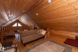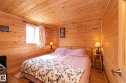 Furnished and ready to go! This 2013 KNOTTY PINE cabin sits on 27 screw piles in HAUSER’S COVE — with its PRIVATE dock slip, community boat launch, 5km of scenic trails, and peaceful Buck Lake surroundings. This 1/2 acre property offers year-round enjoyment—summer, fall, winter, or spring! The 24X40 home features forced air heat, electric hot water, 100 amp breaker, and tin roof. Inside, enjoy the open concept kitchen, dining, and living area, 2 bedrooms, 3-piece bath, laundry/utility room, and a spacious loft ready for your personal touch. Appliances include an electric stove/range and fridge, plus a washer/dryer. The cabin is fully insulated (roof/floor/walls), has well water, septic system. Enjoy the outdoors on the covered front porch or your two-tier south-facing back deck. Only 10 minutes to Buck Lake grocery and hardware store! Move in READY!