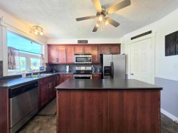 This charming and spacious bungalow offers the perfect blend of modern updates and everyday functionality. Featuring four bedrooms and three bathrooms, this home has been thoughtfully renovated to meet the needs of today’s homeowners. The basement was fully finished in 2024, adding a generous amount of versatile living space ideal for a family room, guest area, or home office. Inside, you’ll find a modern, updated interior with new flooring throughout and a completely refreshed upstairs bathroom. The property includes hot water on demand for added convenience and efficiency. Step outside to enjoy both a front and back deck, completed in 2022, perfect for entertaining or relaxing in the sun. A large detached double garage with back alley access provides plenty of room for parking or a workshop setup. Located in a highly desirable neighborhood, this home is just minutes from the hospital and local schools, making it perfect for families or professionals. Added features include security cameras, lockable gates for privacy and peace of mind, and an additional sump pump installed outside for extra drainage protection. This move-in-ready bungalow is a rare find, combining comfort, security, and a fantastic location. Don't miss out on this exceptional opportunity.