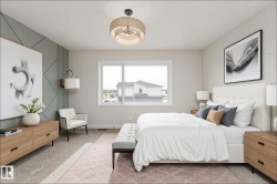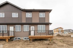 Experience modern living within this brand new 1587 sq ft duplex offering the perfect balance of style and comfort. The main floor boasts an open concept design with oversized windows that fill the home with natural light, a welcoming living room with fireplace, a sleek kitchen with abundant counter space, and a convenient 2pc bathroom. Upstairs you will find a versatile bonus room along with three spacious bedrooms including a primary retreat complete with a walk in closet and a 5pc ensuite, plus another full 4pc bathroom. The unfinished basement provides endless potential for future development while the double attached garage ensures convenience and storage. Step out onto your private deck and enjoy warm evenings in a vibrant community close to parks, trails, schools, and shopping. With brand new appliances, a separate entrance, and the pride of being the first to call it home, this property is ready to welcome you into the lifestyle you have been waiting for. Some photos are virtually staged.