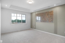A fully custom and upgraded home with overlooking a pond in the community of TONEWOOD sounds like a dream! This home boasts over 2200 sq/ft with 4 bedrooms, 3 full baths, bonus room & 9ft ceilings on all three levels. Main floor offers vinyl plank flooring, bedroom/den, family room with 18ft ceiling, fireplace. Fully Upgraded Kitchen with modern high cabinetry, quartz countertops, island . Spacious dinning area with ample sunlight is perfect for get togethers. The 3 piece bath finishes the main level. Walk up stairs to master bedroom with 5 piece ensuite/spacious walk in closet, 2 bedrooms, 4 piece bath, laundry and bonus room. Unfinished walkout basement has a rough in bathroom that is waiting for creative ideas. Public transit to Edmonton, & more than 40 km of trails your dream home home awaits. includes WIRELESS SPEAKERS/ TRIPLE PANE WINDOWS/DECK WITH GAS BBQ HOOKUP/ROUGH GRADING