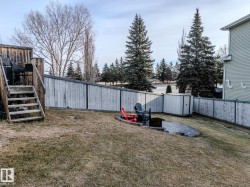 Quick Possession! Nestled on a quiet cul-de-sac in Aspen Glen is this beautiful duplex with over 1500 square feet of living space. Incredibly located on a pie-shaped lot with views of the Links Golf Course. The kitchen has an eat up bar, espresso cabinets, stainless steel appliances & pantry. The bright living room has a large picture window overlooking the massive SE facing backyard. Completing the main floor is a dedicated den and two piece powder room. The upper level features a great size primary bedroom with a walk-in closet and full ensuite. Down the hall are two additional bedrooms, a four piece bathroom & a laundry closet. The unfinished basement has two large windows, providing excellent potential for future development. NEW furnace. Single garage, 21.5' X 11', with shelving and an extra long driveway. The fully fenced backyard has a deck and stone patio with firepit. Situated steps from the Links Golf Course, a man-made lake, parks, walking trails, a large playground, and an outdoor hockey rink.