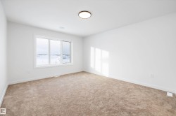 Welcome to this beautifully designed 1,892 sq. ft. half duplex in the desirable Jesperdale community of Spruce Grove. This 3-bedroom, 3-bathroom home offers a functional layout with modern finishes throughout. The main floor features a spacious foyer and a contemporary kitchen with high-gloss cabinetry, quartz countertops, stainless steel appliances, and a large pantry—perfect for everyday living and entertaining. A bright dining area filled with natural light and a convenient 2-piece bath complete the main level. Upstairs, you’ll find a bonus living area, three generous bedrooms, and a full bathroom. The primary suite includes a walk-in closet and a luxurious 5-piece ensuite. The unfinished basement offers excellent future potential with a separate entrance, 9-foot ceilings, and rough-in plumbing for a bathroom. Additional highlights include triple-pane windows throughout for improved energy efficiency and comfort. This home truly stands out and is ready to be the perfect place to call HOME!