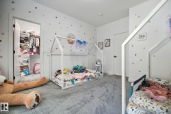 LOCATED in the DESIRABLE COMMUNITY of TONEWOOD, this STUNNING family home showcases HIGH-END FINISHINGS with 2300 Sq.ft. OF LUXURIOUS LIVING SPACE! Featuring AIR-CONDITIONED home with 4 BEDROOMS, 2.5 BATHS, BONUS ROOM, and 9 FT CEILINGS. The MAIN FLOOR offers VINYL PLANK FLOORING, a BEDROOM/DEN, a bright LIVING ROOM WITH 18 FT CEILING & FIREPLACE, and a GOURMET KITCHEN WITH MODERN HIGH CABINETRY, QUARTZ COUNTERTOPS, ISLAND, STAINLESS STEEL APPLIANCES, and WALK-THROUGH PANTRY. The SPACIOUS DINING AREA is flooded with natural light—perfect for gatherings. Upstairs, the PRIMARY SUITE boasts a 5-PIECE ENSUITE and SPACIOUS WALK-IN CLOSET, plus 2 additional BEDROOMS with WALK-IN CLOSETS, a FULL BATH, LAUNDRY, and BONUS ROOM. The UNFINISHED BASEMENT WITH ROUGHED-IN BATHROOM is ready for your vision. Enjoy FULLY FENCED & LANDSCAPED BACKYARD WITH DECK, making it a MOVE-IN READY home. Extras include TRIPLE PANE WINDOWS and GAS BBQ HOOKUP. Close to PUBLIC TRANSIT, TRAILS, PLAYGROUNDS, and PARKS.