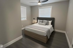 Modern 2,756 sq. ft. two-storey with 1,000 sq. ft. legal basement suite. Main level offers 9 ft. and 12 ft. ceilings, open dining area, and office with storage that could serve as a 7th bedroom. The kitchen includes 7 appliances: fridge, freezer, 2 ovens, gas range, microwave, dishwasher, plus a large walk-through pantry. Upstairs, the primary suite features a fireplace, 4-piece ensuite, walk-in closet with direct laundry access. A second bedroom includes a 3-piece ensuite and walk-in closet, while two additional bedrooms also have walk-in closets. Highlights include high-efficiency furnaces, A/C, HRV, large covered deck, and oversized heated triple garage with 12 ft. ceilings. The legal basement suite has 2 bedrooms, private entrance, large windows, full kitchen with appliances, in-suite laundry, and separate furnace. Exterior features year-round RV parking pad, driveway for up to 7 vehicles, and powered garden shed.