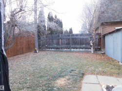 Super rare find in the very sought after Greenfield Estates! Spacious three bedroom end unit with no shared common walls, a double attached garage and an absolutely amazing private yard, so huge and so nicely landscaped! Large deck, large fire pit area, so nice! This gorgeous home has so many great upgrades for you to enjoy! Beautiful kitchen with tons of cabinets and counter space, stainless steel appliances and a nice big pantry. Upgraded bathrooms, flooring, lighting, furnace, hot water tank, HEPA air filtration, and more! Basement features a large rec room, office / gym / flex space plus a huge storage and laundry room. Greenfield Estates has been very well managed, upgraded and so well maintained. The only common wall is in the double attached garage. Great location, nice and quiet but quick access to major routes. This is a really fantastic place to live!
