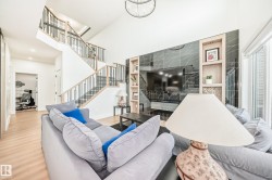 Step into 2023-BUILT MOVE-IN READY home offering 2,000+ sq. ft of thoughtfully designed space. Featuring 4 BEDS, 2.5 BATHS, SEPARATE ENTRANCE to basement, BUILT-IN BLUETOOTH SPEAKER, TOUCH SCREEN FAMILY-HUB REFRIGERATOR, ROUGH IN FOR CENTRAL VACCUM, FINISHED DECK, FULLY FENCED & LANDSCAPED home is perfect for families looking for space, functionality & elegance. The show-stopping OPEN-TO-ABOVE living room is filled with natural light with massive windows & includes a striking fireplace feature wall. The main floor boasts a BEDROOM with CUSTOM WALL DETAILING, and a HALF BATH with mirror all the way up to the ceiling. The gourmet EXTENDED kitchen features QUARTZ COUNTERTOPS, STUNNING ISLAND LIGHTING, a WALK-THROUGH PANTRY and seamless access to the MUDROOM and DOUBLE ATTACHED GARAGE. Upstairs, the primary bedroom is a true retreat with a designer feature wall, elegant lighting, and a spa-inspired ENSUITE with a WALK-THROUGH CLOSET. 2 additional spacious bedrooms, a FULL BATH, BONUS ROOM and laundry room.