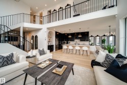 Welcome to The Vantablack by AWARD WINNING builder Justin Gray Homes, set on a 30’ pocket cul-de-sac lot in Cherot. An UPGRADED masterpiece w/over 2500 sqft blends luxury & functionality in a Modern Farmhouse colour palette by CM Interiors, showcasing sleek black cabinetry & timeless Carrera QUARTZ counters. An open to below great rm fills the home w/natural light, complemented by 9’ ceilings, 8’ doors, HARDWOOD floors, & a cozy GAS fireplace. An oversized dbl garage leads to a mudrm w/custom MDF built-ins, connecting to a walkthru pantry w/JG's signature archways,to a chef inspired kitchen w/huge island, premium DOVETAIL cabinetry, & a full KitchenAid APPLIANCE PACKAGE INCLUDED. A bright den & 1/2 bath complete the main. Upstairs find 3 spacious bdrms, incl. a dreamy primary retreat w/VAULTED ceilings, panelled feat. wall, spa-inspired 5 pc ensuite & massive WIC w/DIRECT access to the laundry rm. Steps to parks, near future schools and rec center. *Photos of similar model-final layout/finishes may vary.