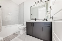 Welcome to Erin Ridge North! This home features a main floor den/bedroom with a full bath, mudroom with bench and hooks, walk-through pantry, beautiful 2-tone kitchen, dining room, and an open to above living room with a stunning stone look fireplace feature wall. On the second level you have 3 bedrooms with 2 full baths, bonus room with an arched entry way and laundry room with a sink. Side entrance with option to finish a legal basement suite. Upgrades include 8ft doors throughout, MDF shelving, jetted shower in primary ensuite, upgraded lighting, feature walls, and rear concrete pad.