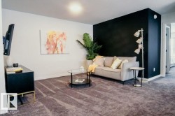 Welcome to the Family Achieve 24 by Cantiro Homes! Offering 2285 sq. ft. of well-designed living space with 3 bedrooms and 2.5 bathrooms, the main floor features a central kitchen with two large eating bars, a spacious living area with a raised tile electric fireplace, and a dedicated homework nook making it perfect for busy family routines. Finished in the Birch Interior Style Package with a modern 2-tone design, the home includes modern cabinetry and horizontal metal railing for a contemporary look. The unfinished basement offers space that can be developed into two additional bedrooms, a living room, and a bathroom to suit future needs. This home is complete with an attached double garage, SIDE ENTRY, and a Farmhouse exterior elevation. Located close to river trails, parks, playgrounds, and just minutes from shopping and everyday amenities.***photos are for representation only, colors and finishing may vary***