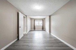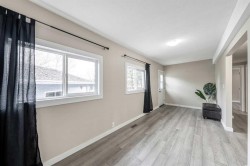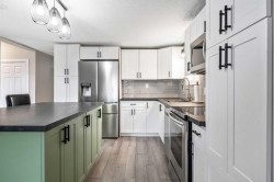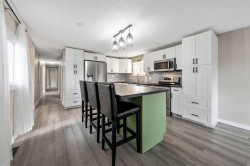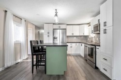 Sitting on a huge pie-shaped lot just under 8,000 sqft, this fully redone property is perfect for anyone who loves space, privacy, and the freedom to work on projects. The double detached garage offers plenty of room for vehicles, tools, or hobbies, while the sprawling backyard is ideal for hosting summer BBQs or relaxing around a cozy firepit. With no homes directly behind and backing onto Brentwood Elementary School, this location truly has it all. The roof was also redone within the last two years. Step inside and you’ll be amazed by the transformation—this home has been completely renovated from top to bottom. Featuring new drywall, vinyl plank flooring throughout, upgraded doors, and all-new appliances, no detail has been overlooked. The kitchen has been fully redesigned with ample cupboard space, a moveable island with extra storage, and modern finishes. It’s truly a chef’s dream, perfect for cooking your favourite meals while entertaining guests. The interior offers a bright, functional layout with two bedrooms plus a versatile den or office, ideal for working from home. Off the den, step onto your newer deck—an inviting spot to enjoy your morning coffee or take a break during the day. The 4-piece bathroom features a soaker tub, walk-in shower, and a stylish vanity with ample storage, all beautifully finished with elegant tile. Down the hall, the spacious laundry room provides plenty of room for organization and everyday convenience. The primary bedroom easily accommodates a king-size bed with additional space for a reading nook or sitting area, while the second bedroom is perfect for a child, guest, or nursery. Outside, the expansive, fully fenced backyard is lined with mature trees, offering privacy and tranquility. The garage includes extra storage, and there’s an additional shed behind it for even more space. Located close to parks, pathways, the Strathmore Aquatic Centre, sports fields, golf course, shopping, restaurants, and the Strathmore District Health Services, this home combines small-town charm with everyday convenience. Homes like this don’t come up often—book your showing today before it’s gone!