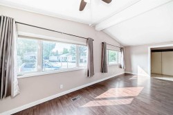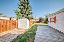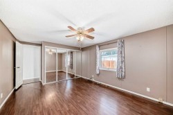 Incredible value awaits in this spacious three-bedroom double-wide mobile home tucked into a quiet neighborhood in Strathmore. The kitchen has been updated with newer appliances, countertops, and cabinets, and flows seamlessly into the dining and living room area. This home comes with many extras including vinyl windows, newer shingles, central air conditioning, a shed, vacuum system with attachments, a newer hot water tank, and a newer washer and dryer.The master bedroom features a three-piece ensuite and plenty of closet space. Two additional bedrooms and a four pce bath finish off this single level home. A side mudroom with backyard access houses the laundry area for added convenience. The front foyer opens to a porch, and outside there is room for two vehicles in the side driveway. There is an addition to the side of the mobile home which could be an office or just a huge mud room that goes into the backyard that is fully fenced and landscaped . Located close to all the amenities including schools, hockey arena, swimming pool, and just minutes from shopping, this home offers convenience without being right in the heart of town. With easy access to the Trans-Canada Highway and only a short half-hour drive to Calgary, this property combines affordability with lifestyle. Don’t miss the chance to make it yours.