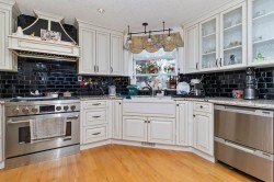 Mahoney Station welcomes you to this Exclusive, Gated Community of Upscale Estate Homes offering added security & privacy for residents. This home offers over 4,100 sq/ft of functional living space. Enter through a grand foyer leading to formal living & dining rooms. Upstairs, discover 3 bedrooms alongside a TV room, including a primary bedroom with a walk-in closet & en suite. The private backyard is an entertainer's haven, featuring a covered hot tub, gazebo, and shed. Conveniently located for commuters, Hwy 1 is just a 3 min drive away, while nature lovers can enjoy a short walk to Fishtrap Creek. 2022 Updates include a new kitchen with top-of-the-line Jenn Air appliances, a 70-year roof with a 50-year Penfolds warranty, and a 2023 hot water tank. A/C for added comfort.