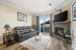 IMMACULATE & Move-In Ready! Nestled in a quiet, GATED community, bright 2 bed, 2 bath home impresses with its spacious design & quality finishes. Featuring 9’ ceilings, crown mouldings, cozy stone fireplace & large sunlit windows, the open layout is bright & inviting. Kitchen offers granite counters, newer appliances & flows into a LARGE Laundry Room with pantry & extra STORAGE - rare find! The oversized primary suite easily fits a king, boasting a walk-in closet & Spa-inspired ensuite with soaker tub, Double Sinks & Heated Floors. Large secondary bedroom. Updates include NEW Flooring, NEW Hot Water Tank & NEW Washer/Dryer. Enjoy sunsets from your west-facing balcony. Excellent Strata - NEW ROOF, LOW STRATA FEES, walk to shops, transit & rec. Option for 2nd PARKING spot. OPEN Nov. 22 1-3
