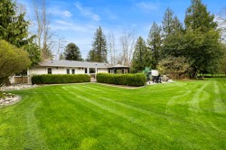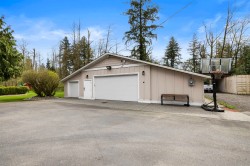 Once in a lifetime opportunity to own a piece of this 5.14 acre renovated Rancher w shop in beautiful Bradner. This gated compound is meticulously maintained by owners w loads of updates. Brand new Combo boiler & air conditioning, dual 200 amp services to shop & house, updated septic field, Generac stand by power plant generator, all new landscape lighting & soffit lighting, 12 person coast spa hot tub & upgraded drainage. Sprawling rancher w bonus basement office/bedroom area. Open bright layout w upgraded bathrooms, engineered hardwood floors, stunning white kitchen w gas range & big island to entertain, beautiful master suite down its own wing w walk in closet & windows everywhere overlooking your mini park. 1709 sq ft shop (46x35) w gym, storage space & your own person lounge w bar!