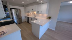 Are you looking to downsize ? Then you must come check out this totally remodeled 2 bedroom townhome. Brand new kitchen with quartz counters,pot lights through out, under counter lighting, new S/S Appliances, new walk in shower,vanity, laminate flooring, loads of storage, Built in TV and Fireplace, fantastic view, Pro active strata, 55+, Rentals allowed, All the pipes in complexe have been replaced, Walk to all amenities. Vacant and move in ready. OPEN HOUSE SAT. 20th 1-3pm, See you there you wont be disappointed