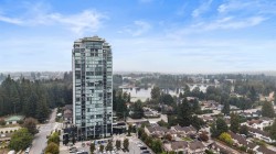 East-facing condo in Mahogany at Mill Lake! Enjoy breathtaking views of Mt. Baker and Mill Lake through floor-to-ceiling windows that flood the home with natural light. This 2-bedroom, 2-bath residence features geothermal heating and cooling, engineered hardwood flooring, heated tile bathroom floors, high-end fixtures, a gas fireplace, and a spa-inspired ensuite with a rain shower. Mahogany offers resort-style amenities including an indoor pool, hot tub, fitness centre, bistro, workshop, outdoor BBQ area, car wash, and 2 guest suites. Just steps to shopping, dining, and Abbotsford Regional Hospital, this home combines luxury living with unbeatable convenience.