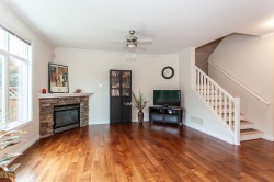 Quarrystone — 10-out-of-10 townhome. Beautifully maintained 12-unit complex! This spacious 2-level home offers 3 bedrooms + 3 bathrooms, combining comfort, style, & functionality. Recent upgrades include new maple hardwood flooring on both levels, new kitchen cabinets + countertops, fresh paint, new crown moulding throughout, updated appliances, & a newly renovated washroom. The open-concept living & dining areas feature a stunning stone fireplace, while the private back patio overlooks peaceful green space. Upstairs boasts 3 generous bedrooms, including a king-sized primary suite with a walk-in closet and full-size laundry. Enjoy a large garage, a very private setting, and a prime location close to Harrison Lake & Hot Springs, and just 20 minutes from Chilliwack with easy Hwy access.