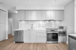 Welcome to Crescent Court, developed by Liberty Homes, situated at the peak of Burnaby Mountain in the heart of the SFU community. This unit with a wraparound balcony showcasing Spectacular views of Mountains, Waters and City. Spacious floor plan with a modern kitchen, engineered hardwood flooring. Features two bedrooms on the opposite sides which makes it a great rental property for SFU students. The building also features four amenity rooms and a beautifully landscaped central courtyard. This property includes one parking spot and one locker. It's conveniently located just steps away from public transit, childcare facilities, schools, parks, restaurants, shopping, hiking trails, and bus stops.
