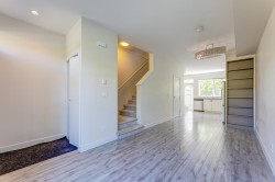 This 3-story CORNER UNIT boasts open layout with 3 bdrm + 3 baths. 9 foot celing,laminate flooring, large windows throughout main floor. Two good-size bedrooms on the second floor are on opposite ends offering max privacy. Spacious master bedroom on the top floor has vaulted high ceiling, 5pcs resort-style ensuite and tranquil courtyard view. Private yard with beautiful dogwood tree is perfect to enjoy morning coffee or summer breeze. Conveniently located near Edmonds Skytrain Station, High Gate Village, Save On foods, public library, Edmonds Community Centre and more. BONUS 2 parking + 1 locker included (Parking #28 & 29, Locker #100). Rental 100% allowed.