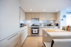 Welcome to Vittorio by Polygon, a stunning home in the heart of Burnaby. This bright and spacious unit boasts panoramic mountain + city views, modern designer finishes, and air conditioning - included in the strata fees! The sleek open-concept kitchen features integrated appliances and quartz counters. Floor-to-ceiling windows flood the space with light. The building offers luxury amenities including a full-size gym, basketball court, study room, kids playground, and a residents' lounge to entertain family and friends - but with very low strata fees. Walking distance to Metrotown Mall, skytrain, Bonsor Recreation Centre, transits, schools and parks.