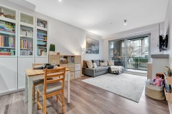 Award-winning GREEN development by eco-conscious builder Adera, nestled in Byrne Creek Ravine Park! This 1 bedroom + den, 1 bath condo boasts an open layout with a well-designed kitchen featuring granite countertops & SS appliances, seamlessly connected to the dining area and a living room with a cozy electric fireplace. High-quality laminate flooring, in-suite laundry & a private balcony overlooking a garden and tranquil water features complete this charming home. Includes 1 parking & 1 locker; complex has EV chargers and ample visitor parking. Pets & rentals allowed. Seasons Club amenities: gym, sauna, yoga studio, lounge, party room, playground and outdoor BBQ. Conveniently located near Taylor Park Elementary, Edmonds Skytrain, Market Crossing & Highgate Malls and Riverway Golf Course.