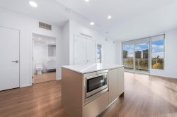 Welcome to The City of Lougheed – Tower 2, a premier high-rise community offering contemporary living in an unbeatable location. This 3rd-floor, 561 sq. ft. home boasts breathtaking 180-degree panoramic westward views, filling the space with natural light and stunning sunsets. Designed for comfort and style, this home features an open-concept layout, high ceilings, air-conditioning, sleek laminate flooring, quartz countertops, and premium stainless steel appliances. The walk-through closet leads to a spa-inspired bathroom, maximizing space and functionality. A large balcony extends the living area, providing the perfect spot to enjoy the city skyline. 1 Parking, 1 Storage & Move-in Ready!
