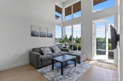 Step into PENTHOUSE living where stunning design meets everyday convenience. This exclusive TOP FLOOR penthouse boasts soaring 14-foot ceilings, streaming natural light, and breathtaking mountain views from sunrise to sunset. With 780 sq. ft. of thoughtfully crafted space, this 2-bedroom retreat offers an airy, open layout perfect for both relaxing and entertaining. A generous private outdoor area extends your living space even further—ideal for morning coffee, evening wine, or hosting friends. For those who crave urban excitement, New Westminster is just 5 minutes away. Families will appreciate the close proximity to elementary and high schools.