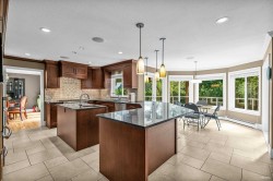 "Must see" STUNNING Burnaby Lake Executive VIEW home on cul-de-sac; QUITE/PRIVATE location on 11,400 SF professionally landscaped property! Features included 4 bdrms 4 bathrooms with Miele D/W & W/D, beverage centre, steam oven, Wolf 6-burner range, Kit-Aid wall oven, Dacor m/wv, Sub-Zero fridge, wine cooler; cupboards (w/pull-outs!) & granite counter tops, tile floor. Home & deck wired/networked for sound. Amazing LARGE grape arbor deck PLUS hot tub. Beautiful pool w/waterfall. Enjoy a private, large fenced yard with a spacious patio, sundeck, and double garage. Elementary and Burnaby Central Secondary. This home is move-in ready, Don't miss out !! Open house 2-4 Saturday July 19.