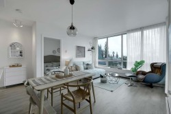 ALTITUDE- SFU's master-planned University District. This bright 3 Bed + 2 Bath + Work station , Southwest CORNER unit has stunning Panoramic Mountain and city Views. NEW laminate flooring (July,2025) in livingroom and kitchen, 9 Ft. ceilings & floor-to-ceiling windows that fill the space with natural light. The two bedrooms are thoughtfully separated by the living/dining area, providing privacy & tranquility, very generous sized. Ample visitor parkings & EV chargers available. Just one block from SFU campus, bus loop, daycare, supermarket, & cafes. Strata fee includes heat , gas and hot water.