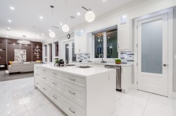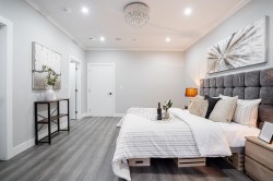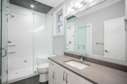 Welcome to 8433 10th Avenue! High side of the street, parking out front is allowed on this part of 10th Avenue. Just like new, TOTAL of 7 BDRMS, 8 BATHS over 4000 sqft of finished home. Top floor has 4 BDRMS , 3 FULL BATHS & laundry. Main floor has separate Living & Dining RM. Decorative wall separating family rm & kitchen. Grand kitchen with off white cabinets, built-in-appliances, huge Island & spice kitchen with gas stove, fridge & dishwasher. Beautuifully designed family rm entertainment wall. Full BDRM w/BATH on main floor. Basement has media rm. 2 suites, both are 1 BDRM each with laundry. Radiant heated floors. CCTV, A/C, covered deck, 2 car garage w/2 piece bath, electric gate off the lane. Central location, easy access to Hwy#1, SFU, both levels of schools...