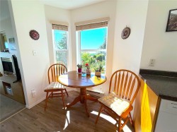 Coastal living at its finest! Enjoy each day with beautiful unobstructed ocean views. Designed with an open layout, the kitchen seamlessly connects to the dining and living areas, creating an inviting space that’s perfect for entertaining or relaxing. You will love the cozy gas fireplace, while large windows flood the home with natural light. The primary bedroom offers a tranquil retreat with a garden view, and the second bedroom is ideal for guests or a home office. Additional comforts include in-suite laundry, secure underground parking, and ample storage. Step outside and you’re just across from Campbell River’s famous Seawalk — perfect for your morning or evening stroll. With shops, cafés, and parks nearby, you’ll love the convenience of sought-after Willow Point. Recent updates include; a new roof, fresh flooring, updated light fixtures, and modern paint make this condo truly move-in ready. The building features a guest suite that guests can rent at $30/ night.