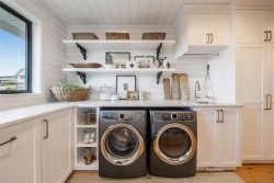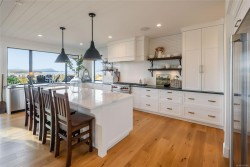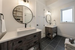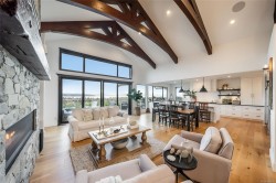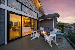 This breathtaking custom-built home with stunning panoramic ocean views was designed with intention and finished to perfection by Twelve Oaks Construction. The living room wows with vaulted ceilings showcasing old-growth custom curved exposed trusses and a sleek linear gas fireplace framed in real stone. The kitchen is a chef’s paradise, with a shiplap ceiling, an oversized quartz-topped island, a full-size fridge and freezer, a Wolf six-burner dual-fuel range, a glass-front fridge, and a walk-in pantry. The primary suite feels straight out of a design magazine, featuring a reclaimed brick accent wall that frames the ocean view window, a spa-inspired ensuite with a walk-in tiled shower and a freestanding soaker tub.Downstairs, the bright walkout basement impresses with 10-foot ceilings, a cozy family room with gas fireplace and entertainment bar, a soundproof theatre room, secondary primary suite, spacious guest room, another full bathroom and a home gym. The home is one of a kind.