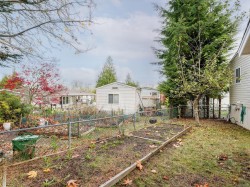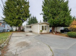 Welcome to Cedar Ridge Estates, one of the BEST manufactured home parks on Saanich Peninsula and in all of Greater Victoria! This is a stable Park with low pad fees and a long-term head lease in place well into the future. Families & all ages are welcomed, and pets are allowed. Unit #220 features an oversized large private driveway to accommodate 5 cars easily! Two bedrooms & two full bathrooms with a great living room, kitchen, and eating space / dining area are all in excellent condition. Vinyl windows & skylights provide plenty of natural light. Other bonuses are a large covered deck plus a separate open air concrete patio, and a second small covered stoop. The included storage shed is insulated & hooked up with power. Fully fenced backyard is a feature with two garden beds and a mature apple tree! Additional side yard provides plenty of outdoor space. New hot water tank installed May 2025 and roof has more than half-life remaining. In-unit laundry. Come see!