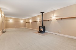 Spacious and well-maintained home in a desirable 55+ community, offering comfort, functionality, and charm. An oversized dining room flows into a bright living room with vaulted ceilings and a cozy gas fireplace—perfect for hosting or relaxing. The massive master bedroom features a large ensuite and a walk-in closet. A versatile second bedroom is ideal as a guest room, home office, or hobby space. The lower level includes a generous rec room with a free-standing fireplace, two partially finished storage rooms, and a large additional bedroom with its own walk-in closet. Step outside to enjoy a two-tiered backyard with a large patio and convenient sidewalk access to the front. BONUS FEATURES include new carpets on main floor, double garage, air conditioning, and a built-in vacuum system.