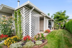Charming 2-bedroom, 2-bathroom ranch-style home located in a well-regarded 55+ community. Step inside to a bright and updated home with a practical layout designed for comfort. Classic white kitchen with ample dining space and abundant storage. Relax in the spacious living and dining area featuring a natural gas fireplace for cozy evenings. The spacious primary bedroom offers generous storage with double closets & an en-suite that provides a touch of luxury. The second bedroom serves as a guest room or home office. A private covered patio, suitable for year-round enjoyment and a front patio ideal for friendly conversations with neighbours. Carport with outside storage & close proximity to the clubhouse. Vibrant community with various events & walking distance to shopping & dining.