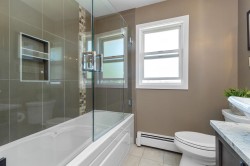 HOME FOR THE HOLIDAYS, fully updated, valuable property with views of Hope River. Fantastic living spaces on all 3 levels incl. formal level entry and family room with easy walkout to the amazing yard space. Main floor with living rm with a new natural gas fireplace and south-facing windows w/electric blinds. Modern kitchen with shaker cabinets, quartz counters, inlay sink, gas range and island open to the dining rm w/ French doors to the sundeck. Upper level with 3 good-sized bedrms, primary w/ ensuite, deluxe 5-pce main bathrm. Quality updates throughout. Excellent in the city location, 80 ft frontage, 8,712 sq ft landscaped property, in-ground sprinklers, large newer concrete driveway, RV parking, private backyard with patio, sundeck and gazebo with hot tub. Location and style!