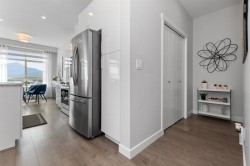 TOP FLOOR, CORNER UNIT, W/ AIR CONDITIONING! This incredible unit is one of a kind in all of Chilliwack! With an abundance of windows, and north and east exposure, it offers spectacular mountain views not just out of every window, but off the spacious corner deck. Inside, this 2bdrm 2 bth unit has been spotlessly maintained and shows pride of ownership. Ductless unit keeps the space cool in the summer, and warm in the winter, saving on electrical heat. Being top floor you get to enjoy the peace of having no one above, and only 1 neighboring unit beside you.This fabulous building offers a private earthy sitting space to embrace, walk around paths with benches on the elevated 1st floor, and a roof top deck best enjoyed with company! Rare 2 spot OWNED parking stalls in the secure UG parking.