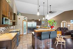 Outstanding 3 bedroom custom built home located on a large 1.22 acre corner lot in one of the most desirable subdivisions- Sunshine Valley. This home has attention to detail inside & out, featuring an expansive open concept main floor layout with heated floors throughout. Enjoy the custom kitchen with black walnut cupboards & built in pullouts, pot filler, high end fixtures & stainless appliances accented with stone countertops & a live edge bar top. With 14ft vaulted ceilings the family room & bright dining room offers plenty of space for entertaining. The main floor is also complete with 3 bedrooms including the oversized primary featuring a walk-in closet & beautiful ensuite bathroom with white oak cabinets, soaker tub with custom shower & double sink. Access to a covered patio off of the primary bedroom. Functional laundry area with plenty of storage & a full guest bathroom. Plenty of parking with an attached double car garage with mechanical room & access to the crawl space. The exterior features include a detached shop with 200 amp panel, water, & extra septic system (not connected), green house & garden beds, trees planted on perimeter, as well as apple tree, raspberries, blueberries & blackberries. This property has so much potential to expand or just move in and enjoy! Call today for a detailed information package or private viewing.